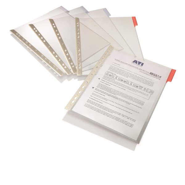Náhradní kapsy formátu A4 Pro systém Sherpa, Vario a Function Z průzračné tvrzené antireflexní fólie (umožňuje skenování), s rozlišovacími barevnými štítky 60 mm, které dělí tabule na 5/5, barevným okrajem …