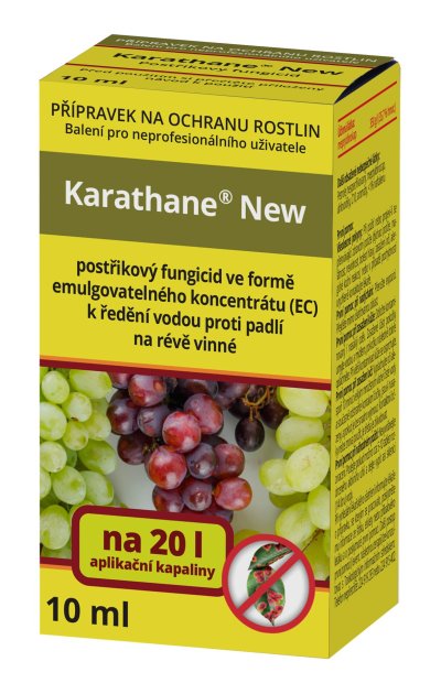 Karathane New je postřikový kontaktní fungicid vyznačující se kurativním, eradikativním a preventivním účinkem na padlí révové a současně omezující výskyt a škodlivost svilušek. Působí unikátně proti přezimujícímu myceliu padlí ve vinohradech a proto bývá zařazován také do prvních postřiků.