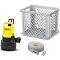 Technické údaje: Výkon motoru max. (W) 550 Průtok max. (l/h) < 16000 Přívodní teplota (°C) max. 35 Dodání do (m) 8 Tlak (bar) max. 0,8 Velikost zrn (mm) max. 20 Ponorná hloubka (m) max. 7 Min. zbytková voda, manuální (mm) 25 Výška zbytkové vody (mm) 25 Připojovací závit G1 1/2 Připojovací závit na straně Vnitřní závit G1 / 2 Připojovací kabel (m) 10 Napětí (V) 230 - 240 Frekvence (Hz) 50 Hmotnost bez příslušenství (kg) 4,9 Hmotnost včetně obalu (kg) 8,3 Rozměry (D x Š x V) (mm) 229 x 238 x 303