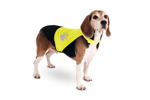 Bezpečnostní vesta s reflexními prvky pro psy s motivem tlapky. Zapínání na suchý zip. Velikost M.