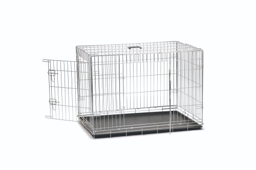 Stříbrná drátěná klec vhodná pro malá zvířata. Nabízí bezpečné útočiště doma i na cestách.