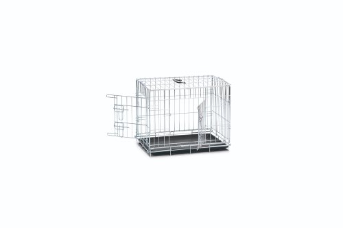 Stříbrná drátěná klec vhodná pro malá zvířata. Nabízí bezpečné útočiště doma i na cestách.