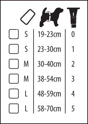 | Obvod pasu | 18-23 cm | 24-31 cm | 32-39 cm | 40-49 cm | 50-59 cm | 60-70 cm |