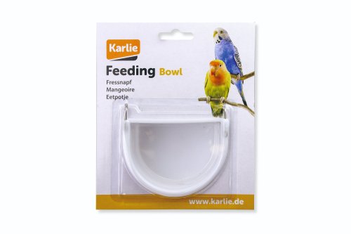 Miska na krmení s kovovými háčky k zavěšení do ptačí klece.