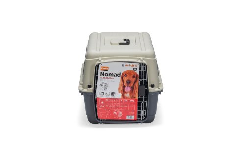 Cestovní přepravka NOMAD pro malé až střední psy nabízí pevnou konstrukci z odolných plastů, uzamykatelná kovová dvířka, boční výztuhy a velmi odolný povrch. Splňuje podmínky pro přepravu letadlem. Představuje ideální přenosný pelíšek pro použití na cestách i doma. Větrací mřížky zajišťují dostatečnou cirkulaci vzduchu. Kovová dvířka s praktickým uzavíracím systémem umožňují rychlé otevření a bezpečné zavření. Odnímatelná miska na vodu je součástí balení.