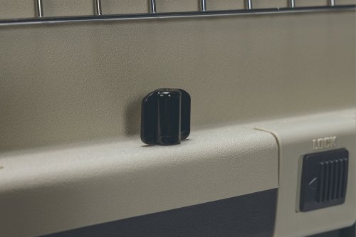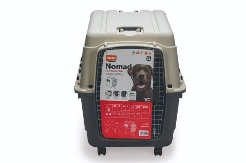Cestovní přepravka NOMAD pro velké psy nabízí pevnou konstrukci z odolných plastů, uzamykatelná kovová dvířka, boční výztuhy a velmi odolný povrch. Splňuje podmínky pro přepravu letadlem. Představuje ideální přenosný pelíšek pro použití na cestách i doma. Větrací mřížky zajišťují dostatečnou cirkulaci vzduchu. Kovová dvířka s praktickým uzavíracím systémem umožňují rychlé otevření a bezpečné zavření. Odnímatelná miska na vodu je součástí balení.
