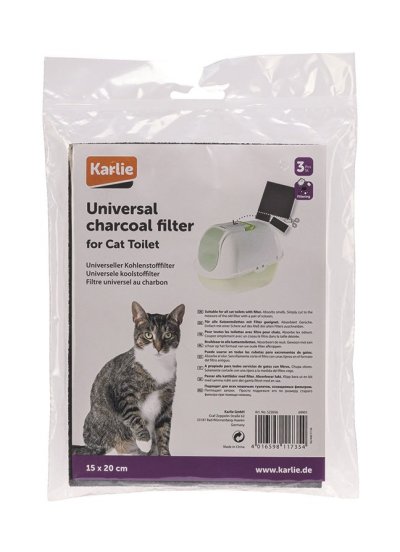 Univerzální filtry pohlcují nepříjemné pachy. Jsou vhodné pro všechny kočičí toalety. Filtr o rozměrech 15 x 20 cm lze zastřižením jednoduše upravit na požadovanou velikost. Balení obsahuje 3 filtry.
