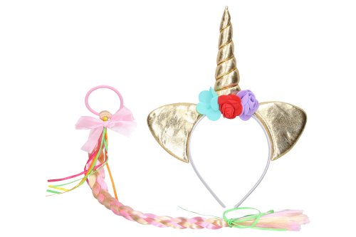Čelenka jednorožec s copem. Balení obsahuje 2 ks a to čelenku 1ks a cop na gumičce 1 ks