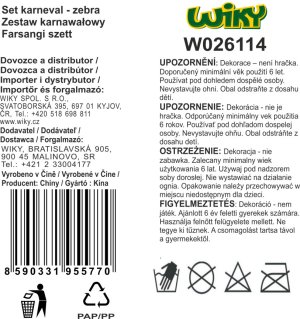 Karnevalový set - zebra Čelenka, ocas