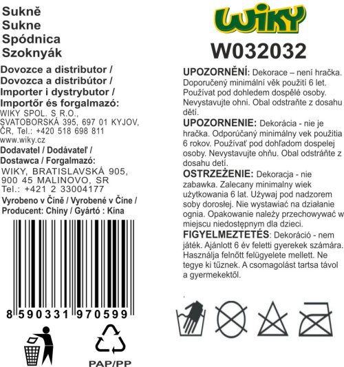 Karnevalový doplněk - sukně dvouvrstvá. 3 barevné provedení. Délka sukně: 29 cm