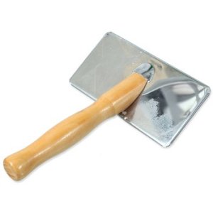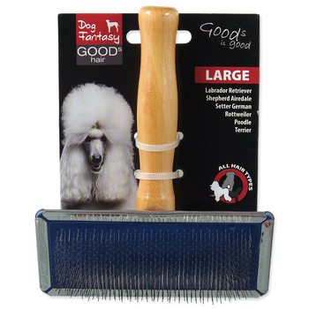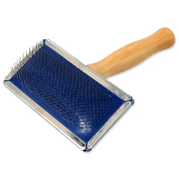 Kartáč s kovovými drátky a dřevěnou rukojetí pro větší psy.