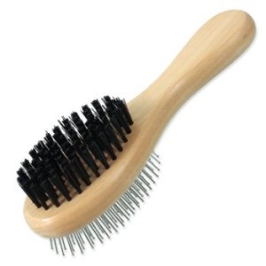 Oboustranný dřevěný kartáč pro malé psy.