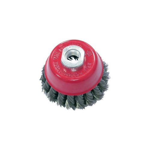 kartáč hrnkový - kroucený ocelový drát se závitem do úhlové brusky M14 vhodný pro těžké kartáčovací práce, na odstraňování barev, rzi, otřepů a zbytků po sváření a jiných nečistot průměr: 65 mm