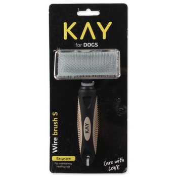 Jednostranný kartáč pro malé psy s příjemně tvarovanou plastovou rukojetí a jemnými drátěnými štětinami.
