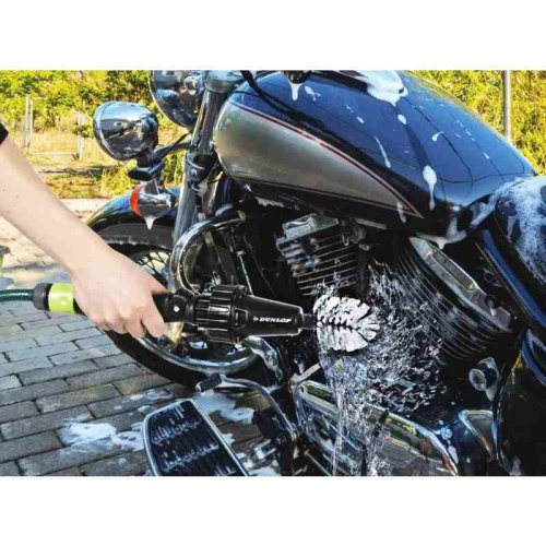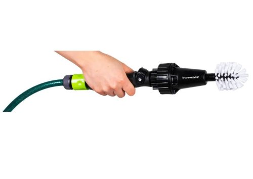 Chcete vyčistit zahradní nábytek, vyčistit ráfky auta nebo umýt kolo či motorku? S tímto multifunkčním čisticím kartáčkem od Dunlop můžete venku čistit ještě lépe. Protože když držíte rukojeť na zahradní hadici, kartáč se začne otáčet vlivem tlaku vody. K čištění a lepšímu výsledku tedy můžete použít rotační kartáč spolu s tekoucí vodou. Hadicové připojení je vhodné pro standardní zahradní hadice 3/4" (19mm). Regulátorem průtoku na držáku můžete určit, jak silný je průtok vody. Sada obsahuje držák a 2 kartáče.Detaily čisticího kartáčku DunlopOtáčí se tlakem vodyObsahuje 2 kartáčeTlačítko ovládání průtokuVhodné pro 3/4" zahradní hadici (19 mm)Vodní kartáč DUNLOP je ideální pro čištění pneumatik automobilů, jízdních kol, zahradního nábytku, motocyklů nebo venkovních dlaždic. Rotace pomocí tlaku vody odstraňuje nečistoty bez námahy. Připojení se provádí přes připojení k vodní hadici se závitem 3/4". Dodáváno se 2 kartáči.