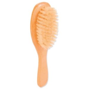 Kartáč s dřevěnou rukojetí a přírodními štětinami.