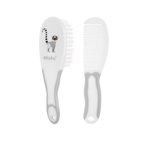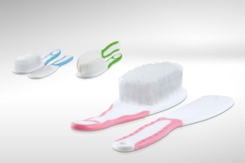 Kartáček s hřebínkem. Protiskluzová rukojeť zabraňuje vyklouznutí a usnadňuje péči o dítě.