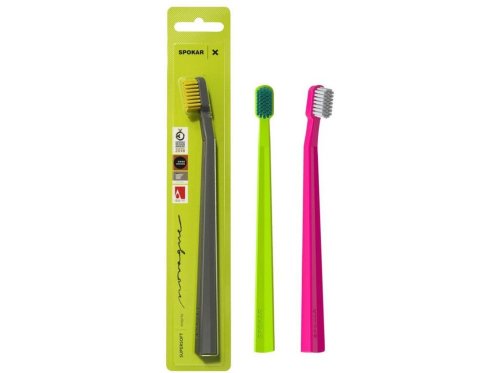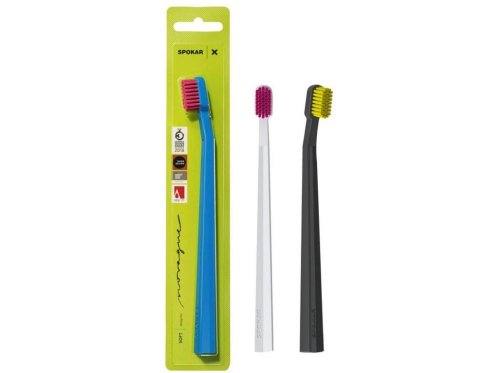 Prémiová řada zubních kartáčků Spokar X je navržena na základě aktuálních doporučení stomatologických odborníků, jedinečný design je výsledkem hledání optimálního držení kartáčku s cílem snadné manipulace a perfektního vyčištění zubů. Hlava kartáčku je velmi hustě osazena vysoce kvalitními jemnými vlákny se zaoblenými konci, tato vlákna účinně odstraňují zubní plak a jsou šetrná k dásním. Prémiový zubní kartáček Spokar X Soft má více než 250000 vláken. Získal několik prestižních zahraničních ocenění.