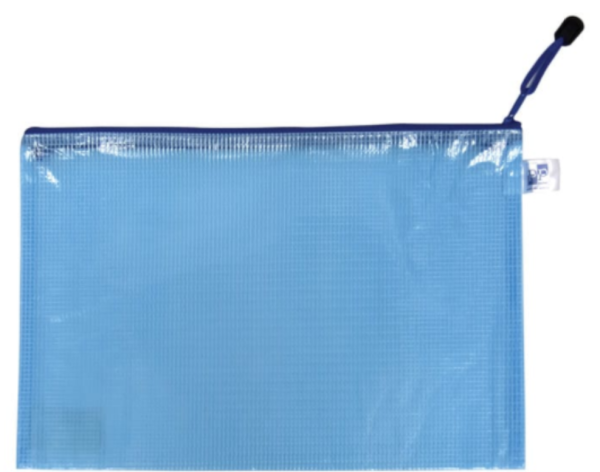 Síťovaná obálka A5 se zipem. Obálka má siťovanou textilní strukturu, která činí obálku odolnější. Materiál plast. Obálka je uzavíratelná na zip. Rozměr 23 x 17 cm.