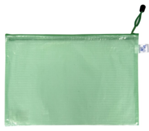 Síťovaná obálka A5 se zipem. Obálka má siťovanou textilní strukturu, která činí obálku odolnější. Materiál plast. Obálka je uzavíratelná na zip. Rozměr 23 x 17 cm.