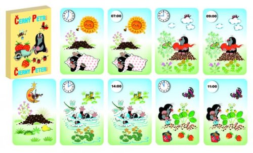 Hra Černý Petr s motivem Krtka. Karty jsou v papírové krabičce 6x9 cm. Vhodné od 3 let.
