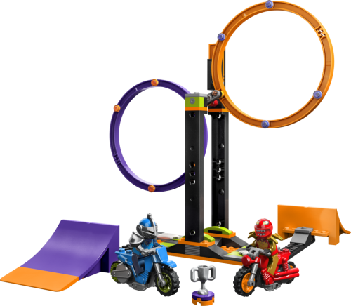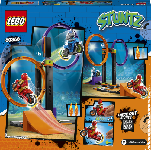 Děti od 6 let si zamilují plánování vzrušujících představení, her a soutěží s touto stavebnicí Kaskadérská výzva s rotujícími kruhy od LEGO® City (60360). Najdete v ní otáčivý dvojitý kaskadérský kruh, 2 rampy a 2 kaskadérské motorky se setrvačníkem. Stačí přidat 2 LEGO® City Stuntz jezdce na motorkách a zábava může začít!
