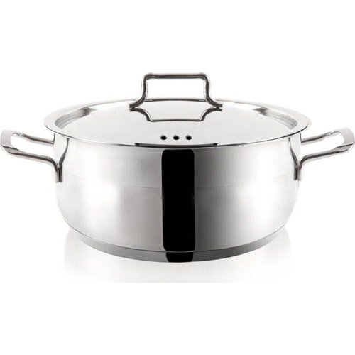 Masivní kastrol ANETT s poklicí z kvalitní nerezové oceli 18/10 s termoakumulačním dnem zajistí úsporné, ekonomické a efektivní vaření.