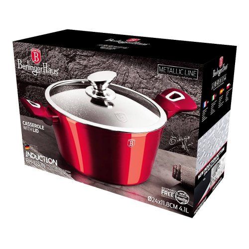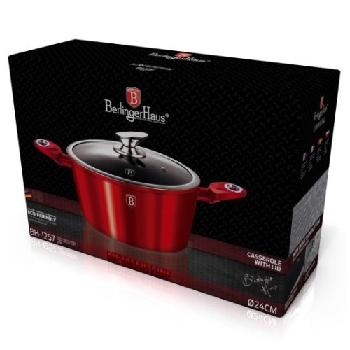Kastrol s mramorovým povrchem a poklicí 24 cm Burgundy Metallic Line BH-1257