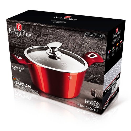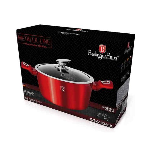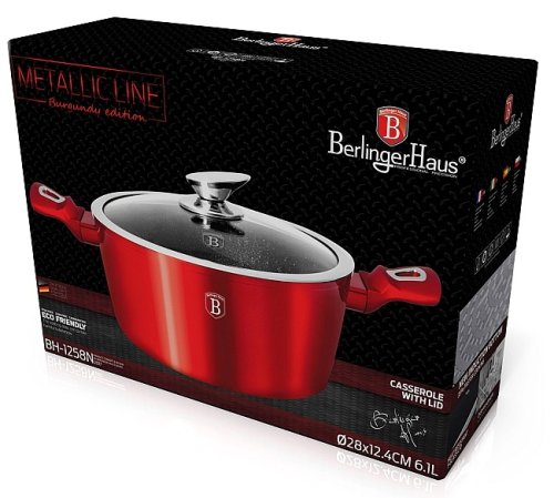 Kastrol s mramorovým povrchem a poklicí 28 cm Burgundy Metallic Line BH-1258