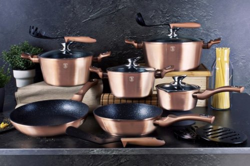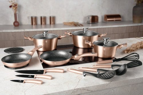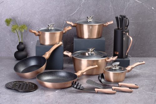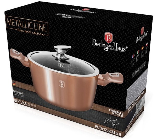 - materiál: kovaný hliník s mramorovým povrchem- barva: Rose Gold, metalická- průměr: 28 cm- objem: 6,1 litru- 3 vrstvý nepřilnavý povrch s mramorovým designem- ergonomické měkčené rukojeti- TURBO indukční …
