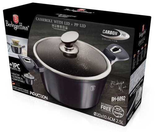 Kastrol s mramorovým povrchem a poklicí v atraktivním designu. Součástí kastrolu je také přesně padnoucí plastové víko, které vám usnadní skladování uvařeného jídla třeba přímo v lednici.