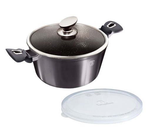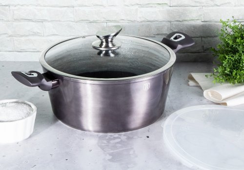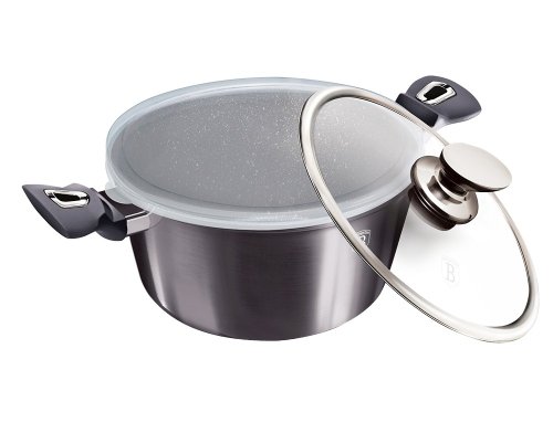 Velký kastrol s mramorovým povrchem a poklicí v atraktivním designu. Součástí kastrolu je také přesně padnoucí plastové víko, které vám usnadní skladování uvařeného jídla třeba přímo v lednici.