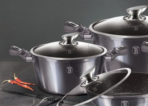 - 3vrstvý povrch s mramorovým designem charakteristický svou dokonalou nepřilnavostí, připravované potraviny se nepřipalují a díky tomu se nádobí velmi jednoduše čistí