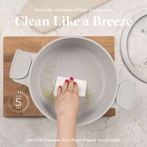 Elegantní kastrol z kolekce Sahara Collection s titanovým povrchem je ideálním pomocníkem pro každodenní vaření. S objemem 4,4 l a průměrem 24 cm je vhodný pro přípravu různých pokrmů. Skleněná poklice se silikonovým okrajem zajišťuje bezpečné vaření, zatímco odnímatelné silikonové rukojeti umožňují snadnou manipulaci. Kastrol je kompatibilní s indukčními, sklokeramickými, plynovými i elektrickými varnými deskami a je vhodný také pro použití v troubě.