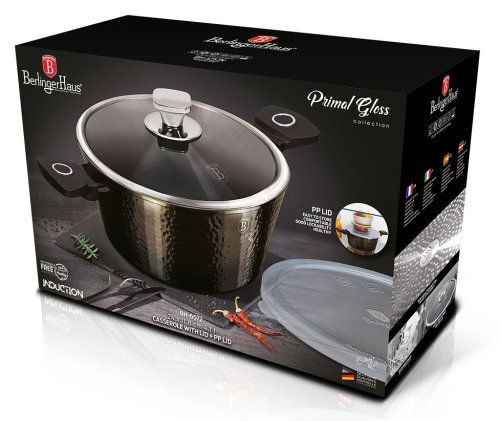 Kastrol s titanovým povrchem v unikátním designu Primal Gloss Collection. Součástí hrnců Primal Gloss jsou 2 poklice. Klasická skleněná poklička a navíc silikonové víko pro komfortnější užívání. Vnější tepaný vzhled kastrolu jistě zaujme každého hned na první pohled. Tepaný povrch je silnější a odolnější vůči poškození či deformaci, navíc vypadá opravdu výborně. Vnitřní vrstva je pokryta třívrstvým titanovým povrchem, který je charakteristický svou dokonalou nepřilnavostí. Připravované pokrmy se tak nepřipalují a díky tomu se kastrol velmi snadno čistí. Titanový povrch, stejně jako ostatní použité materiály, neobsahují žádné škodlivé látky, vaření je tak zcela zdravé a hygienické. Zesílené Turbo indukční dno z nerezové oceli je kompatibilní se všemi druhy sporáků a spolehlivě funguje také na indukci. Nespornou výhodou jsou také tepelně odolné rukojeti, které se při vaření nezahřívájí a zůstávájí stále chladné. Kastrol Primal Gloss je vhodný pro každodenní vaření, dušení i smažení, perfektně bude vypadat i při servírování hotových jídel přímo na váš stůl.
