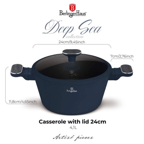Vařte, zapékejte a servírujte s prostorným zapékacím hrncem Berlinger Haus, který je vyroben z kovaného hliníku s odolným nepřilnavým povrchem TitanPro. Díky modernímu designu v matné modré barvě se šedými dřevěnými detaily se stane ozdobou každé kuchyně.