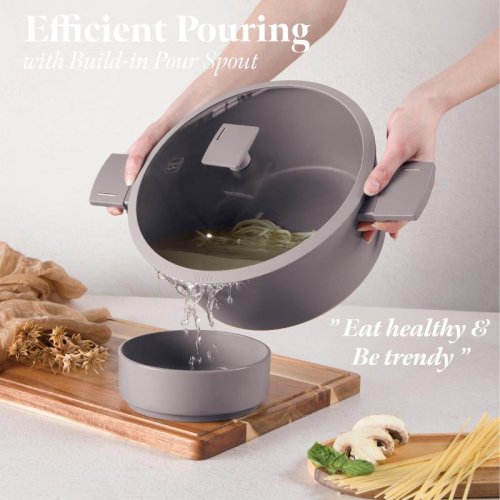 Kastrol s titanovým povrchem a poklicí 30 cm Taupe Collection BH-8103