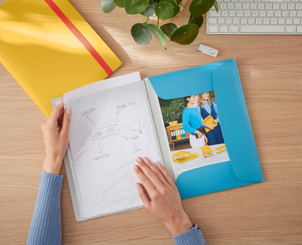 Značková řada Leitz Cosy vám umožní cítit se jako doma, ať už vás váš pracovní den zavede kamkoli. Díky minimalistickému designu a lákavé matné povrchové úpravě přidáte do svého pracovního prostoru styl a barvu. Katalogová kniha Leitz Cosy A4 je ideální pro prezentaci nebo ukládání dokumentů, dokumenty chrání a umožňuje jejich snadné prohlížení. Praktické integrované 3chlopňové desky vzadu rozšiřují celkovou kapacitu. Tento prémiový organizér dokumentů je perfektním doplňkem do vašeho domova nebo kanceláře, usnadní a zpříjemní vám práci s dokumenty.