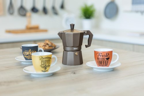 Kávovar CAMPI na 6 šálků je tradiční kávovar pro domácí přípravu chutné silné kávy. Je vhodný pro použití na plynových, elektrických a sklokeramických deskách. Hliníkové tělo kávovaru již po několika šálcích získá patinu, která je pro správnou chuť kávy nepostradatelná. Kávovar je opatřen bezpečnostním ventilem. Kávovar není vhodný pro mytí v myčce.
