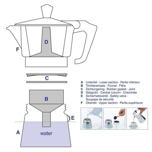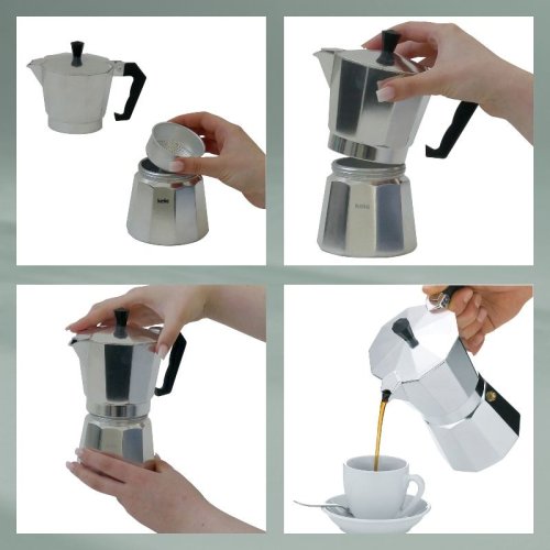 - Tradiční moka konvice ITALIA vyrobená z potravinářského hliníku vhodná pro přípravu až 6 šálků kávy- klasická příprava espressa originální italskou metodou vysokého tlaku vodní páry- velmi rychlá a …