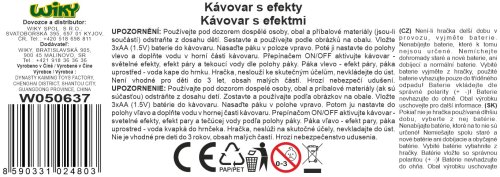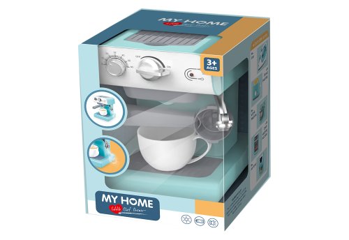 Kávovar pákový s efekty a párou. Rozměry 22x21x26.5cm. 3xAA baterie nejsou součástí. nádržka na vodu je na horní straně kávovaru. Když páka směřuje doprava, dá se odejmout nebo přidělat. Pro zafixování dejte páku směrem dopředu. Světelné a zvukové efekty. Když se kávovar zapne a rozsvítí se kontrolka, vychází z trysky pára.