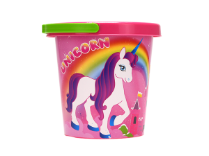 Nepostradatelný kbelík pro plánované projekty na pískovišti i mimo něj, poslouží k přenášení vody, písku a bahna. Kbelík s jednorožcemje o velikosti 14 cm. Vhodné pro děti od 10 měsíců.