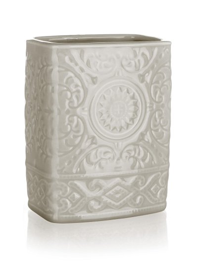 Keramický kelímek na zubní kartáčky v šedo-béžové barvě s nadčasovým designem skvěle doplní každou koupelnu.