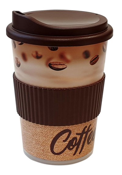 Kelímek s pítkem 0,4 l, s manžetou, PH EKOLINE COFFEE. objem: 0,4 l materiál: plast, silikon potisk: COFEE Plastový kelímek s víčkem a pítkem, vhodný na servírování kávy.