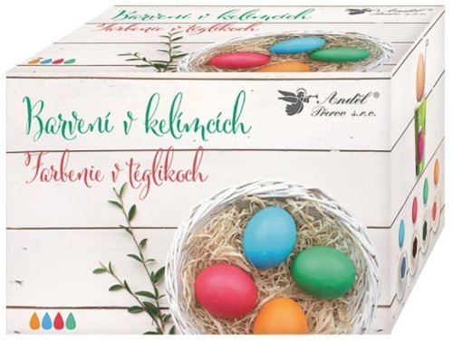 Vytvořte si krásná velikonoční vajíčka s barvením v kelímcích.Snadné a jednoduché použití!Balení obsahuje:4 ks papírových kelímků s barvou připevněnou na dnědržáček na vajíčkaBarvy: červená, zelená, modrá, oranžováNávod:Vejce uvařte v osolené vodě.Do cca poloviny kelímku nalijte horkou vodu a přidejte 2-3 lžíce octa.Teplá vejce jedno po druhém namáčejte, dokud nedosáhnete požadované barvy a nechejte uschnout. K dosažení lesku můžete lehce namazat kuchyňským olejem.Jeden kelímek nabarví 4 - 5 vajíček.