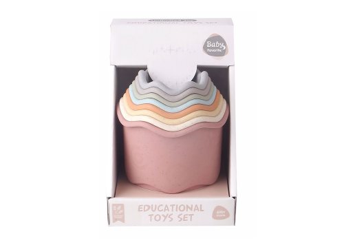 Kelímky stohovací věž, vlnky. Balení obsahuje 8 ks. Rozměry postavené věže 9,8x9,8x40,8 cm.