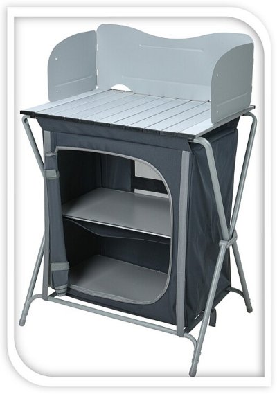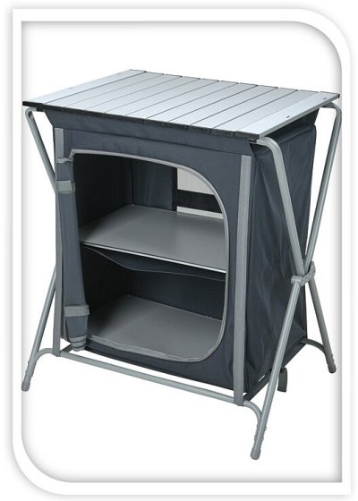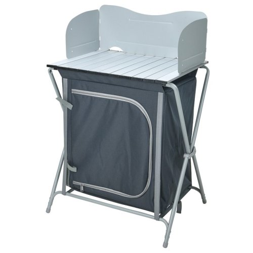 Díky této skládací kuchyňské lince můžete v kempu vařit v naprostém pohodlí. Pracovní deska nabízí prostor pro kompletní přípravu jídla. Pod pracovní deskou jsou 2 přihrádky, kam můžete přehledně uložit jídlo, nádobí a další kuchyňské náčiní. Tento kuchyňský nábytek lze složit, takže jej lze vždy skladovat a snadno vzít s sebou do auta.- přenosná kempingová kuchyně- hliníková konstrukce s pracovní deskou- plášť z polyesteru 600D- velmi dobře odolný proti protržení a prodření- rozměry: 70 x 50 x 104 cm- celková váha: 7 kg- značka: PROGarden