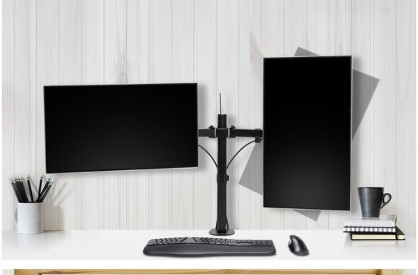 Montážní desky kompatibilní se standardem VESA® 75/100 s možností rychlého uvolnění si poradí s monitory až do velikosti 32" a hmotnosti 8 kg (na každém rameni).