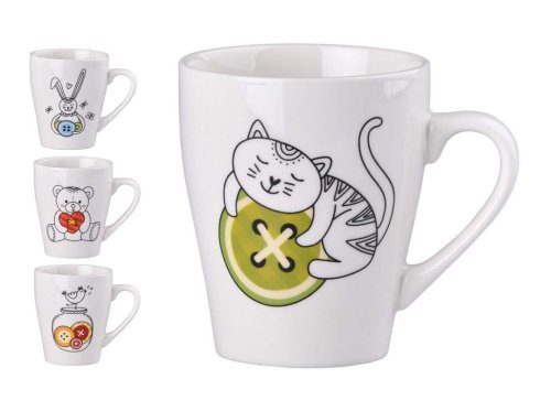 Tato sada dvou keramických hrnků 340 ml kombinuje praktickou velikost s originálním designem. Mix barev dodává kuchyni hravý vzhled. Hrnky jsou vhodné pro každodenní použití, kávu, čaj i jako dárek. Zboží je dodáváno v mixu. Doručované zboží je vybíráno náhodně a nelze vybrat konkrétní provedení.