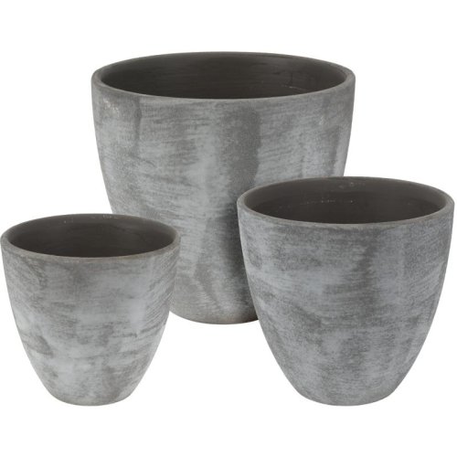 Moderní sada tří květináčů v elegantní černé-šedé kombinaci s jemným vzorem. Ideální pro stylové aranžmá rostlin v interiéru i exteriéru.